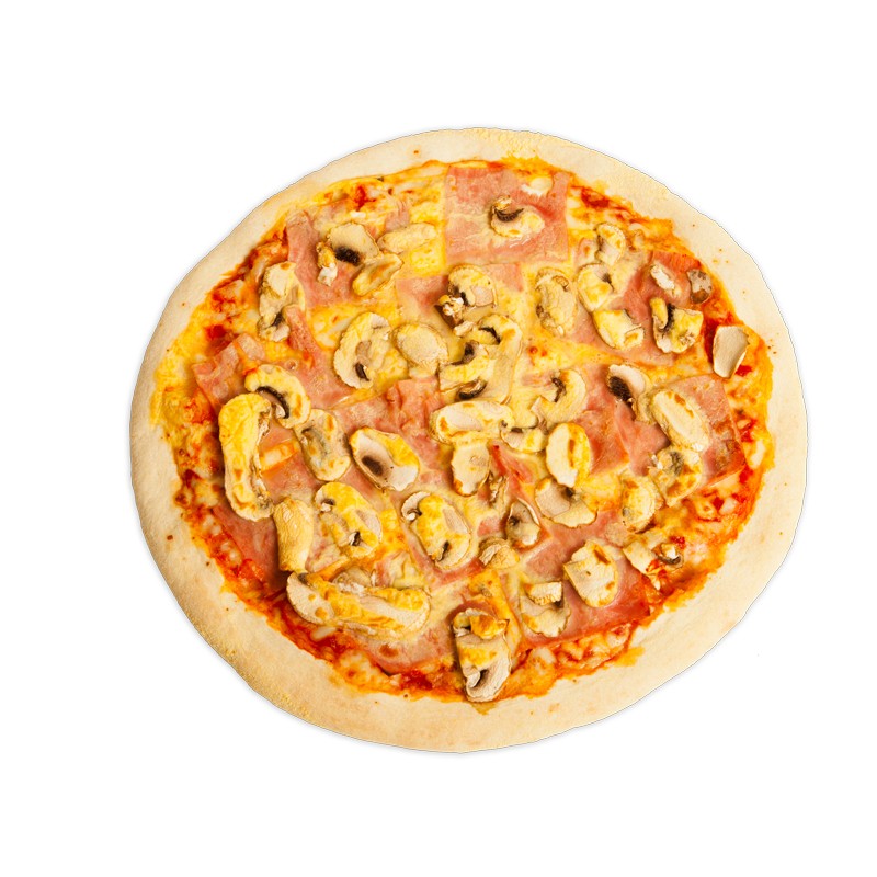 Sauce tomate, mozzarella, jambon, double champignons